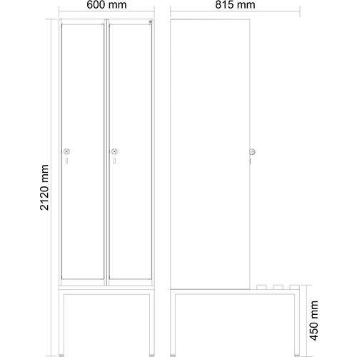 Vestiaire Classic PLUS à banc intégré, Type de vestiaire: Standard, Matériau: Acier, Nb de colonnes: 2