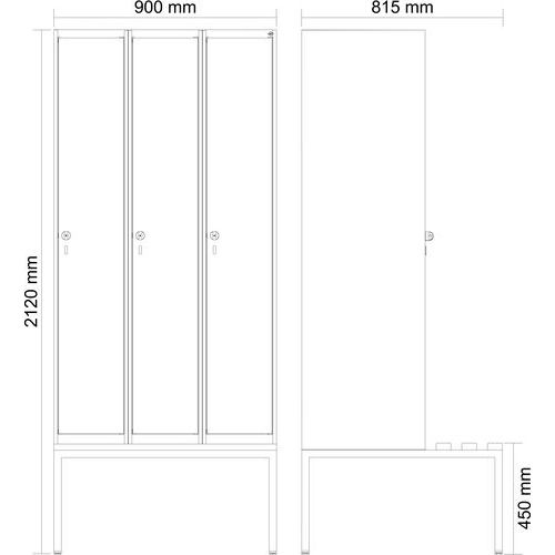 Vestiaire Classic PLUS à banc intégré - 3 colonnes - CP
