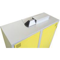 Vestiaire de désinfection rapide, efficace et économique avec technologie Ozone. Tablette largement perforée pour libre circulation et bonne ventilation de l’Ozone. Vestiaire avec capot de protection ainsi que témoin de fonctionnement d'Air Care. Produit conçu et fabriqué en France. Solution Ozone : désinfection totale en temps record des vêtements et outils !