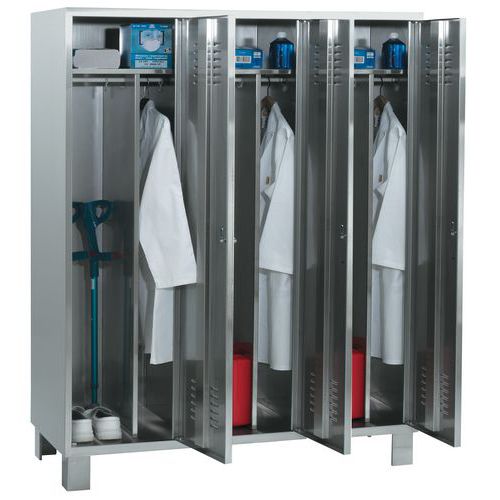 Vestiaire inox 1 à 3 colonnes, Type de vestiaire: À casiers et penderie, Matériau: Inox, Nb de colonnes: 3