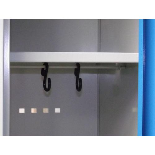 Livré avec 1 tringle à crochets. Les modèles à fermeture à clé sont livrés avec 1 serrure par colonne et 1 jeu de 2 clés par serrure.