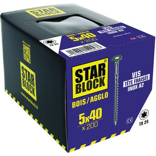 Vis inox A2 à tête fraisée Torx - Boîte de 200 - Starblock