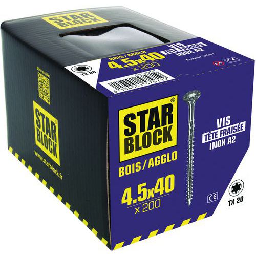 Vis inox A2 à tête fraisée Torx - Boîte de 200 - Starblock