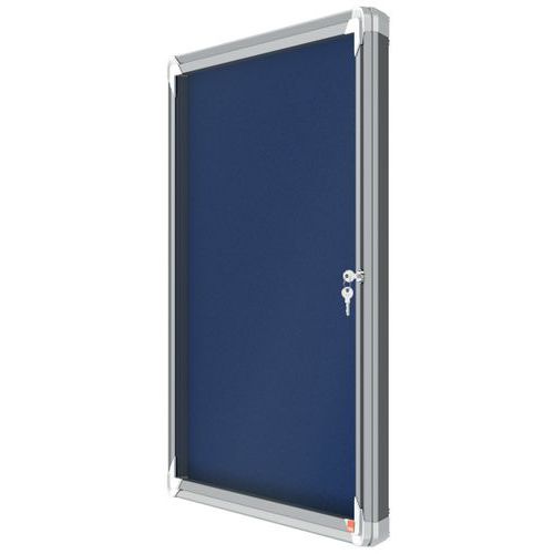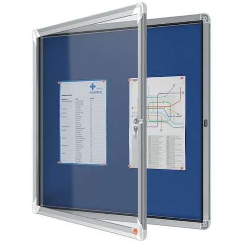 - Vitrine d'affichage en feutre avec porte battante en verre sécurité et serrure sur le côté.