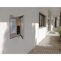 - Vitrine d'extérieur à fond magnétique dotée d´un joint d´étanchéité et d´une façade en verre sécurité résistant.