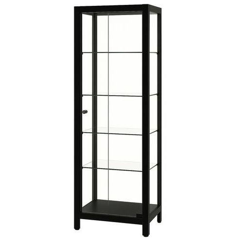 Vitrine d'exposition avec 4 tablettes en verre flotté de 5 mm, réglables. Porte à charnière en verre trempé (5 mm) avec verrou. Supporte une charge 10 kg par tablette. Avec éclairage PowerLED 1 x 7 W (blanc chaud) sur le dessus. Pieds réglables avec vérins de mise à niveau. Vitrine d'exposition livrée montée. Tablettes réglables en hauteur. Fabriqué en UE Garantie client : 10 ans