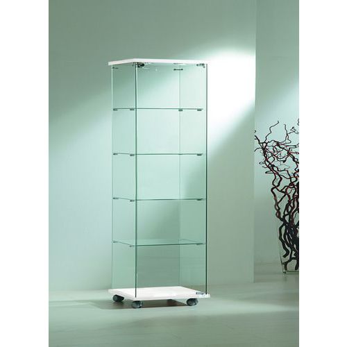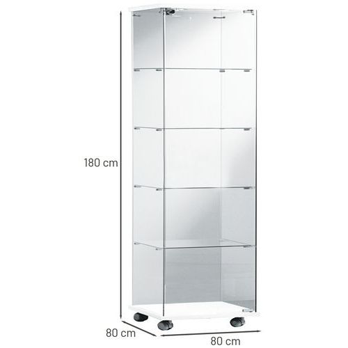Vitrine d'exposition Echo blanche 181 cm avec éclairage, Socle coloris: Blanc, Hauteur: 181 cm