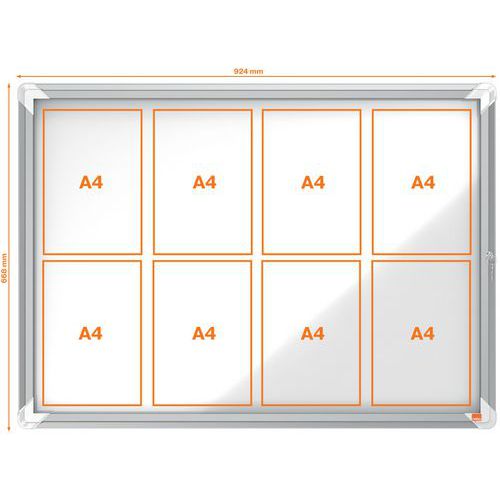 Vitrine d'extérieur à fond magnétique, Capacité (nb de feuilles A4): 8, Hauteur: 970 mm, Magnétique: oui Vitrine d'extérieur à fond magnétique, Capacité (nb de feuilles A4): 8, Hauteur: 970 mm, Magnétique: oui
