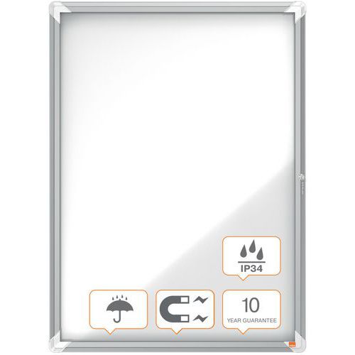 Vitrine d'extérieur à fond magnétique dotée d´un joint d´étanchéité et d´une façade en verre sécurité résistant. Protégez vos informations importantes des intempéries dans une vitrine d´extérieur fermant à clé. Certifiée NF Education et NF Collectivité. Fournie avec une serrure renforcée pour une sécurité optimale. Gardez vos informations importantes dans un endroit sûr et sec.