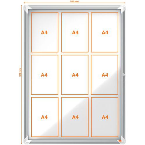 Vitrine d'extérieur à fond magnétique, Capacité (nb de feuilles A4): 9, Hauteur: 1000 mm, Magnétique: oui Vitrine d'extérieur à fond magnétique, Capacité (nb de feuilles A4): 9, Hauteur: 1000 mm, Magnétique: oui