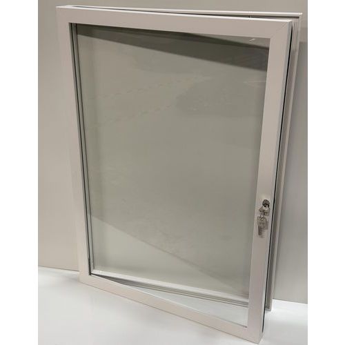Vitrine d'exterieur porte battante - Fond aluminium -cadre blanc - AME