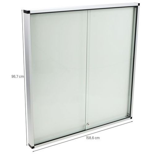 Vitrine d'affichage intérieur robuste, sûre et légère. Surface magnétique en acier laqué pour l'affichage de vos documents par plots magnétiques. Porte coulissante verrouillable transparente offrant une excellente visibilité des affichages du matériel affiché. Vitrine en verre renforcé 5 mm d'épaisseur pour plus de sécurité. Verrouillable et fournie avec 2 clés.