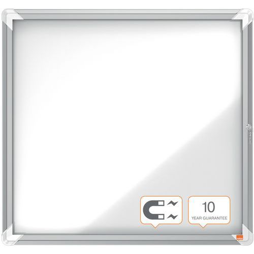 Vitrine d´intérieur à fond magnétique Nobo fermant à clé. Constitue un moyen à la fois simple et élégant de protéger les communications importantes. Certifiée NF Education et NF Collectivité. Equipée d'une porte frontale. Dotée d´une façade en verre sécurité. Fournie avec une ou deux serrures renforcées pour une sécurité optimale.