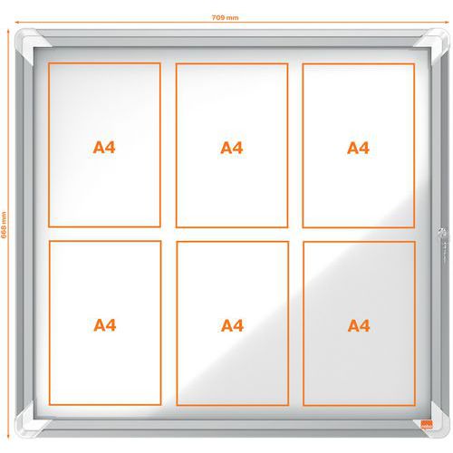 Vitrine d'intérieur à fond magnétique, Capacité (nb de feuilles A4): 6, Hauteur: 667 mm Vitrine d'intérieur à fond magnétique, Capacité (nb de feuilles A4): 6, Hauteur: 667 mm