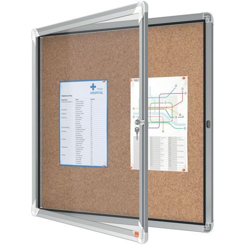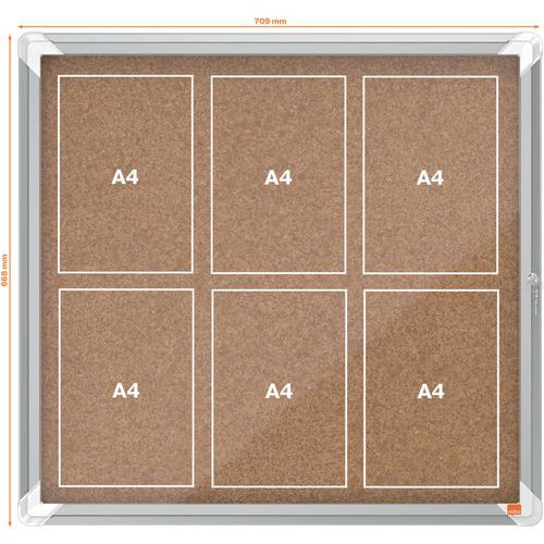 | Intitulé du produit | Vitrine d'intérieur Nobo à fond en liège 6 x A4, Capacité (nb de feuilles A4): 6, Porte matériau: Aluminium |