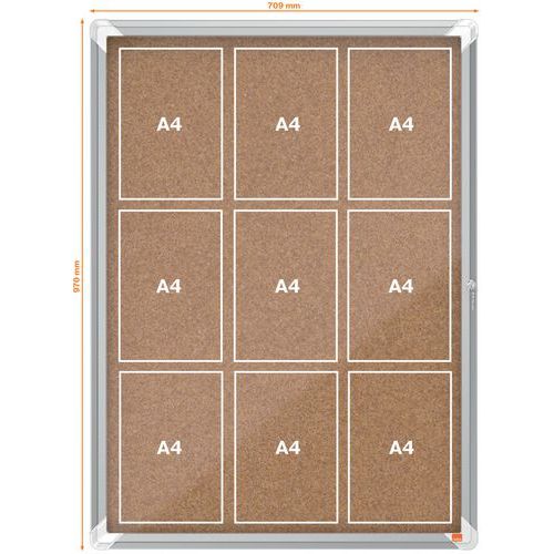 | Intitulé du produit | Vitrine d'intérieur Nobo à fond en liège 9 x A4, Capacité (nb de feuilles A4): 9, Porte matériau: Aluminium |