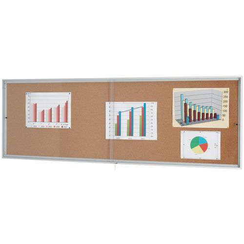 Vitrine d'intérieur portes coulissantes - Fond liège - Porte en plexiglass