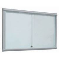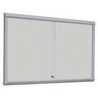 Vitrine d'affichage intérieur avec cadre en aluminium anodisé et portes coulissantes verrouillables via sa serrure à l'avant. Fond en tôle laquée permettant l’écriture effaçable à sec et l’affichage par plots magnétiques des documents. Porte en verre Securit transparent de 4 mm offrant une grande résistance aux impacts et aux chocs thermiques. L'avantage du verre Securit est que, en cas de bris, il se fragmente en petits morceaux afin d’éviter les accidents.