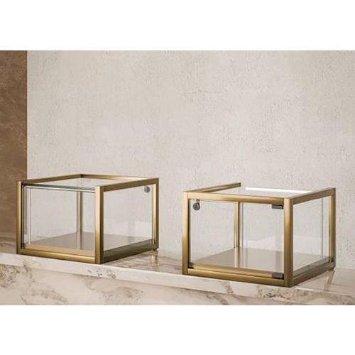 Vitrine exposition à poser, Socle coloris: Bronze, Hauteur: 32.5 cm, Largeur: 45 cm, Profondeur: 45 cm