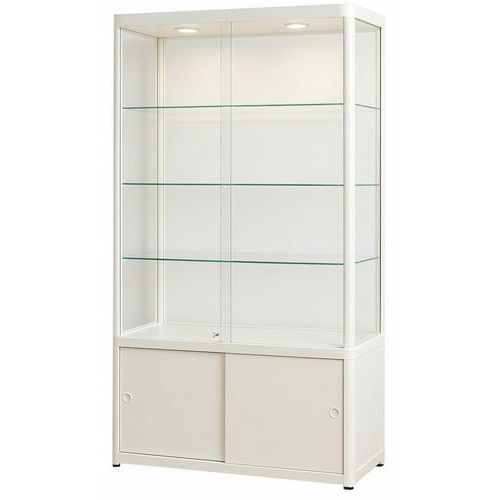 | Intitulé du produit | Vitrine exposition avec rangement, Socle coloris: Blanc, Hauteur: 200 cm, Largeur: 95 cm, Profondeur: 50 cm |