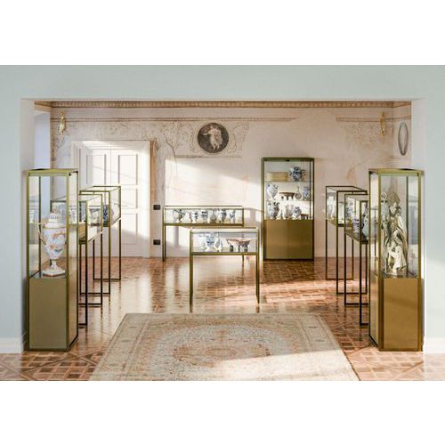 Vitrine exposition sur pieds, Socle coloris: Bronze, Hauteur: 95 cm, Largeur: 95 cm, Profondeur: 45 cm