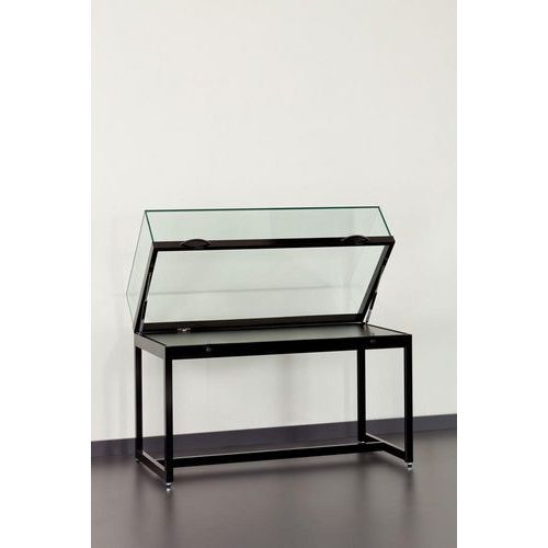 Vitrine exposition table sur pieds, Socle coloris: Noir, Hauteur: 92 cm, Largeur: 120 cm, Profondeur: 60 cm