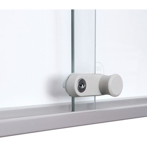 Vitrine verrouillable avec coin de sécurité. Portes coulissantes en verre de sécurité de 4 mm ESG. Coins arrondis en plastique ABS pour la sécurité.