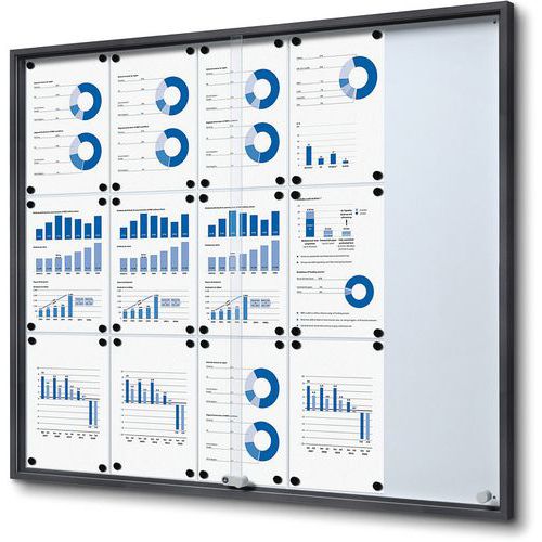 Vitrine verrouillable avec portes coulissantes, Capacité (nb de feuilles A4): 15, Fond matériau: Aluminium Vitrine verrouillable avec portes coulissantes, Capacité (nb de feuilles A4): 15, Fond matériau: Aluminium