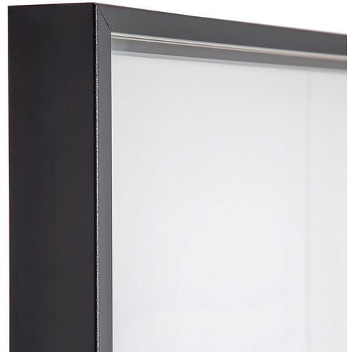 Vitrine verrouillable avec portes coulissantes. Portes coulissantes équipées de verre de sécurité. Aspect fin et élégant. Inscriptible et utilisable avec aimant.