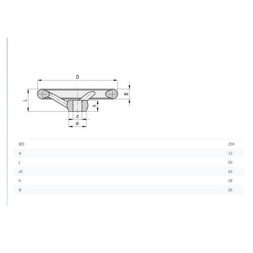 Volant de manoeuvre 3 à 5 rayons, Matériau: Aluminium, Moyeu Ø: 45 mm, Entraxe: 22 mm, Épaisseur: 26 mm